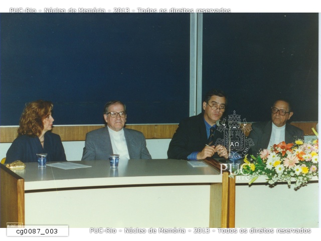 cg0087_003 | 7/10/1994 | Evento com a presença do Reitor Pe. Laércio Dias de Moura S.J., do Vice-reitor Acadêmico Pe.Jesús Hortal Sànchez S.J., do Presidente do Instituto Luíz de Camões e do Consul Geral de Portugal no Brasil. |