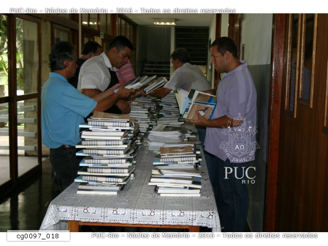 cg0097_018 | 17/12/2009 | Arrumação dos brindes a serem distribuídos após a Assembleia, entre eles um calendário, o livro dos 100 anos de Dom Helder Camara e a Agenda 2010. |