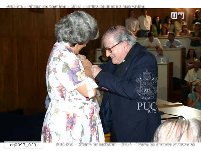 cg0097_050 | 17/12/2009 | Cerimônia de entrega da Medalha Dom Helder Camara. A profa. Luiza Helena Ermel (SER) recebe a medalha do Reitor Pe. Hortal S.J.. |