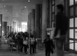 cg0100_046 | 2010 | Pessoas circulam nos pilotis, com banners comemorativos dos 70 anos da PUC-Rio. |