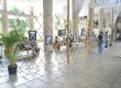 cg0100_044 | 2010 | Pilotis cheio de pessoas, com banners comemorativos dos 70 anos da PUC-Rio. |