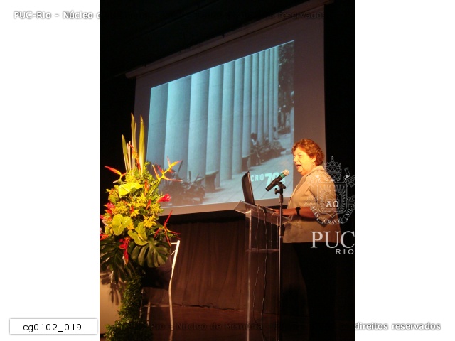 cg0102_020 | 17/11/2010 | A Profa. Margarida de Souza Neves, coordenadora do Núcleo de Memória, apresenta o livro comemorativo dos 70 anos da PUC-Rio. |