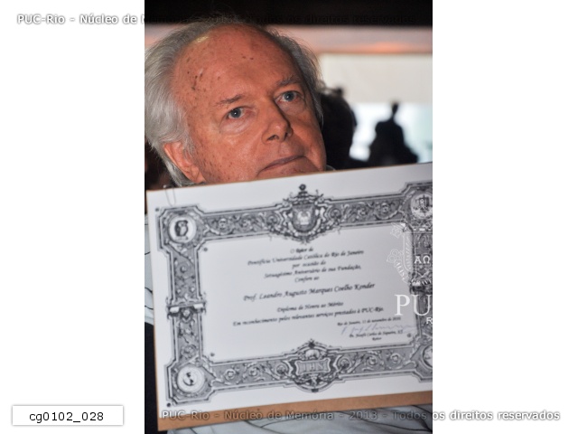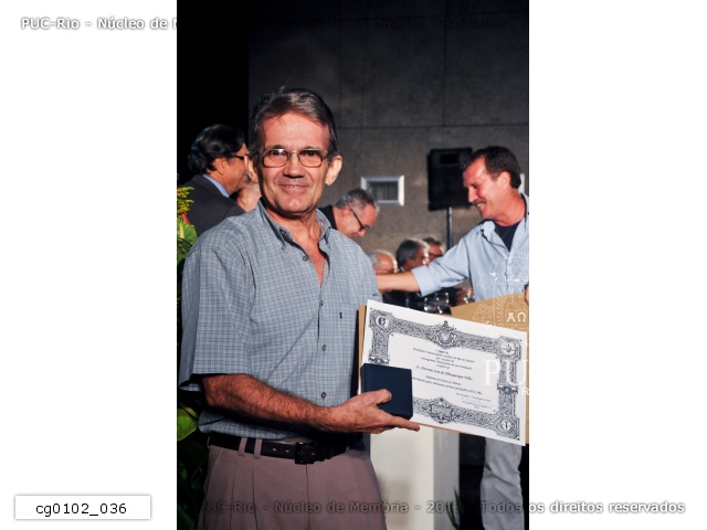 cg0102_039 | 17/11/2010 | O professor José Raimundo Martins Romêo, membro do Conselho de Desenvolvimento da PUC-Rio, recebe o diploma e a medalha comemorativos aos 70 anos da PUC-Rio. |