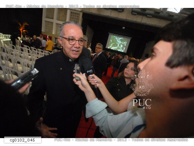 cg0102_045 | 17/11/2010 | O Reitor Padre Josafá Carlos de Siqueira S.J. é entrevistado após a cerimônia. |