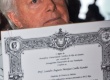 cg0102_028 | 17/11/2010 | O Professor Leandro Konder, do Departamento de Educação, no momento em que foi homenageado com o diploma recebido junto com a medalha comemorativa aos 70 anos da PUC-Rio |