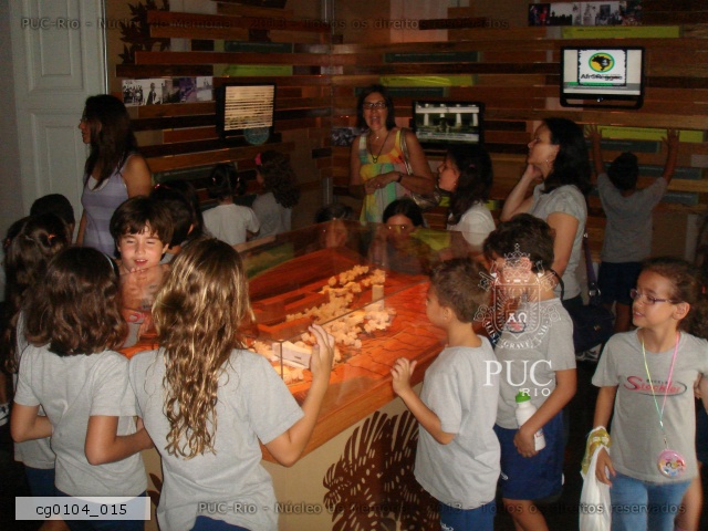 cg0104_014 | 2010 | Alunos de escolas da Gávea em visita a Exposição PUC-Rio 70 anos, Rumo aos 80. Sala No Tempo. |