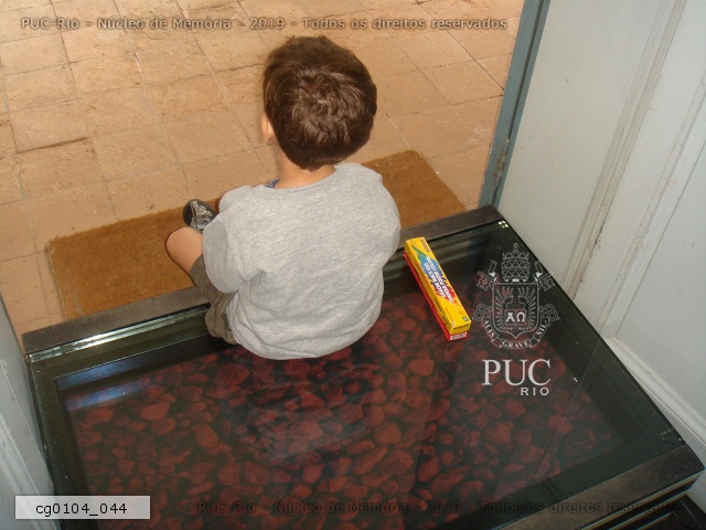 cg0104_044 | 13/11/2010 | Criança em visita a Exposição PUC-Rio 70 anos, sentadas sobre a representação interativa do Rio Rainha. |