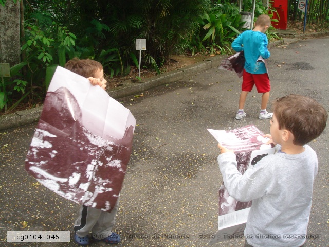 cg0104_046 | 13/11/2010 | Crianças em visita a Exposição PUC-Rio 70 anos brincam com o folder da Exposição. |