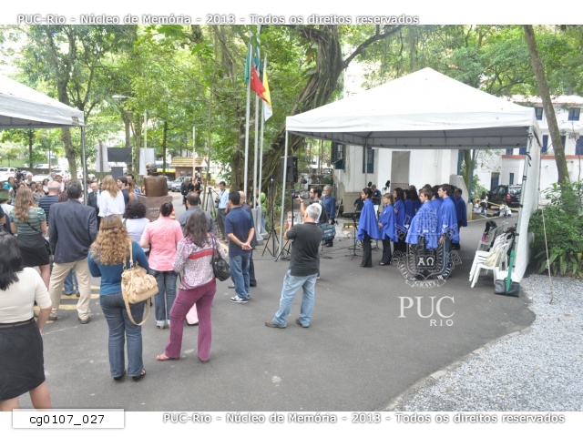 cg0107_027 | 31/3/2011 | Cerimônia de inauguração do busto do Padre Antônio Vieira. Audiência durante a declamação de textos do Padre Antônio Vieira. Coral da PUC-Rio. |