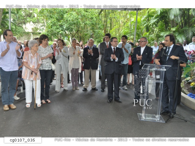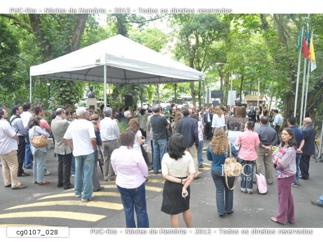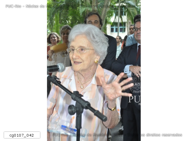 cg0107_043 | 31/3/2011 | Cerimônia de inauguração do busto do Padre Antônio Vieira. Discurso da profa.Cleonice Berardinelli, do Departamento de Letras da PUC-Rio. |