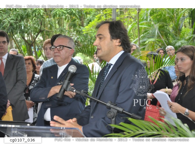 cg0107_050 | 31/3/2011 | Cerimônia de inauguração do busto do Padre Antônio Vieira. Assinatura de documentos relativos a instalação do busto no campus da PUC-Rio. |