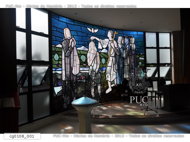 Festa do Patrono da PUC-Rio, o Sagrado Coração de Jesus - cg0108_001 cg0108_001 20/6/2011 Vitral da Igreja do Sagrado Coração de Jesus. Cena do batismo de Jesus, baseado em pintura e Portinari.