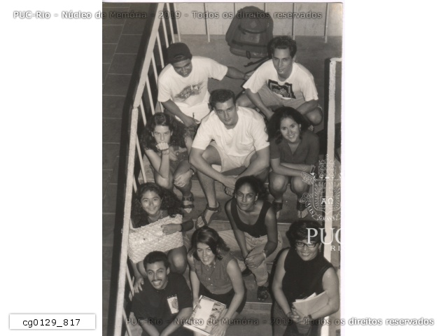 cg0129_817 | 2/1994 | Estudantes de intercâmbio da Califórnia em escada na PUC-Rio. |