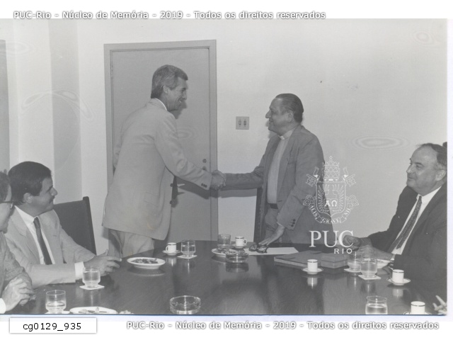 cg0129_935 | 21/9/1993 | A Motor Union Seguradora, representada pelo presidente Armando Erick de Carvalho, doou cerca de 36 mil dólares para a PUC-Rio. O investimento foi destinado à informatização da Diretoria de Admissão e Registro (DAR), da Biblioteca Central e da Vice-Reitoria de Desenvolvimento. |