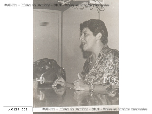 cg0129_668 | 19/4/1991 | Palestra da jornalista e atriz Leda Nagle na PUC-Rio em evento não identificado. |