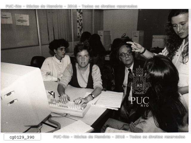 cg0129_390 | 18/8/1990 | Equipe do projeto Computador Cultural que tinha por finalidade catalogar os bens móveis e imóveis de cidades históricas brasileiras. O software para catalogação foi desenvolvido pelo Instituto do Patrimônio Histórico e Artístico Nacional (IPHAN) e o Laboratorium da PUC-Rio. |