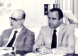 cg0129_764 | 3/4/1996 | Pe. Pedro Magalhães cumprimenta o chefe-adjunto do escritório de Programas Internacionais da Universidade de Oklahoma, Paul Bell Jr., após assinatura do convênio para oferecer programas de intercâmbio para alunos e professores da PUC-Rio. |