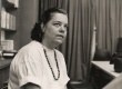 cg0129_168 | 5/9/1989 | Prof. Clarisse Fukelman durante entrevista sobra Machado de Assis. |
