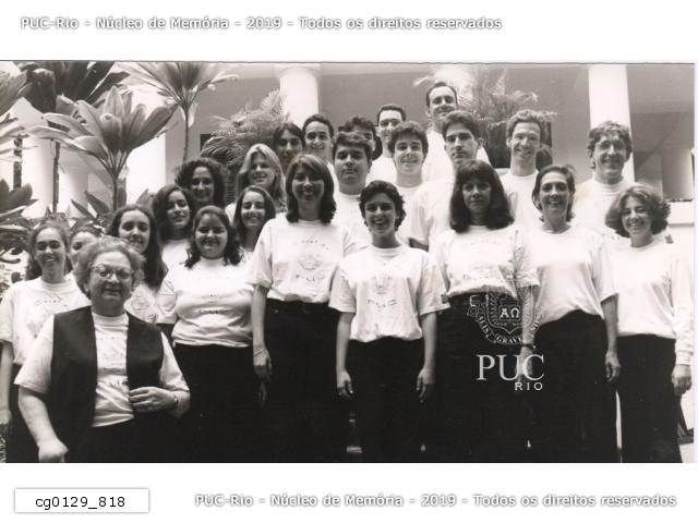 cg0129_818 | 8/1997 | Ensaio do Coral da PUC, que reúne alunos, funcionários e moradores da Gávea com a regente Lydia Podorolski. |