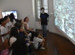 cg0140_035 | 16/10/2018 | Visita de alunos do Colégio Teresiano à exposição. Projeção de fotos na sala redonda do segundo andar. |