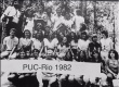 cg0150_035 | 1984 | Segundo a matéria no site, o então aluno de Economia e atual professor Sérgio Besserman fazia parte de uma das torcidas organizadas do Flamengo, a Fla-Diretas. Alguns funcionários do bandejão da PUC-Rio, na época gerido pelo DCE e que aparecem na foto, participavam da torcida. Na matéria o prof. Besserman afirma: “Ao mesmo tempo em que discutíamos política, discutíamos Flamengo. Era uma sensação muito boa: apoiando o Flamengo e derrubando a ditadura. Melhor que isso é difícil imaginar.“ |