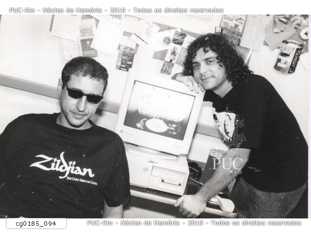 cg0185_094 | 4/1996 | Barão Vermelho aprecia trabalho do Núcleo de Artes Eletrônicas da PUC-Rio. O novo álbum da banda "Álbum" contém uma faixa interativa em CD-Rom produzida pelos alunos do Núcleo. |
