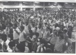 cg0185_056 | 26/4/1985 | Assembleia de greve dos funcionários da PUC-Rio. Funcionários de mãos dadas e braços elevados. A greve chegou a ser decretada, mas negociações em dias posteriores levaram a um acordo e a greve foi cancelada. |