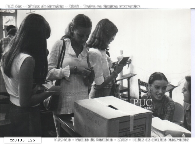 cg0185_126 | 10/1990 | Eleições para os Centros Acadêmicos da PUC-Rio realizadas nos dias 24 e 25 de outubro. |