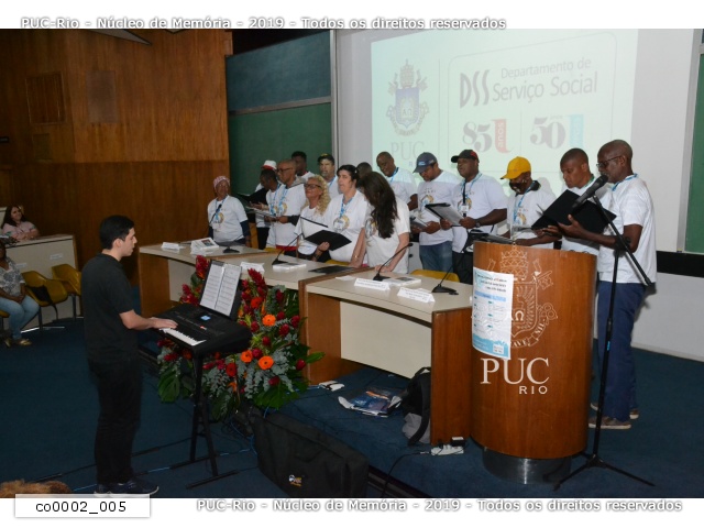 Evento comemorativo dos 85 anos do Departamento de Serviço Social da PUC-Rio e dos 50 anos da criação do Programa de Pós-Graduação em Serviço Social (PPGSS). Foi lançada a edição comemorativa da revista acadêmica O Social em Questão, professores e ex-professores foram homenageados e houve uma apresentação do Coral Canto de Rua, iniciativa da Arquidiocese de São Sebastião do Rio de Janeiro.