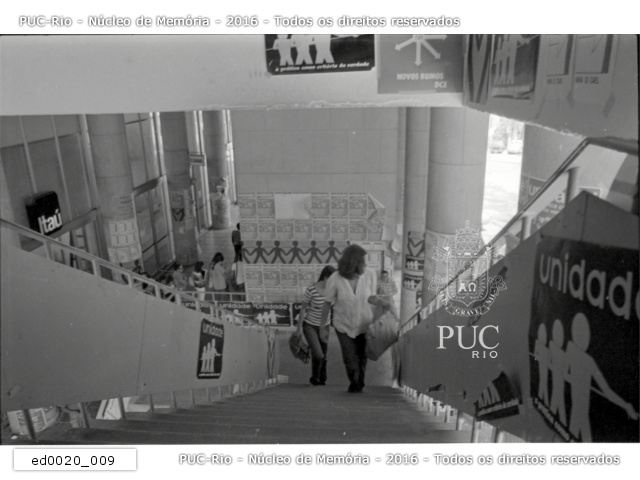 ed0020_013 | 29/10/1978 | Fotografia da escadaria da ala Kennedy em dia de eleição para o DCE da PUC-Rio. |