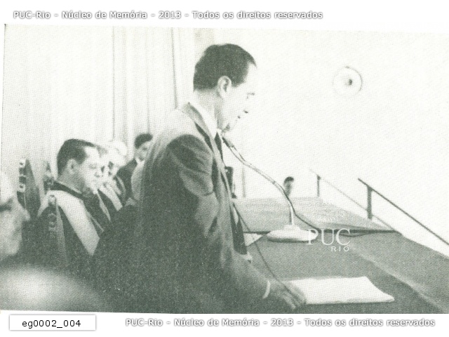 eg0002_004 | 1967 | Embaixador Octavio Dias Carneiro, professor do Instituto de Administração e Gerência (IAG), quando pronunciou a Aula Magna inaugurando o início do Ano Letivo de 1967. |