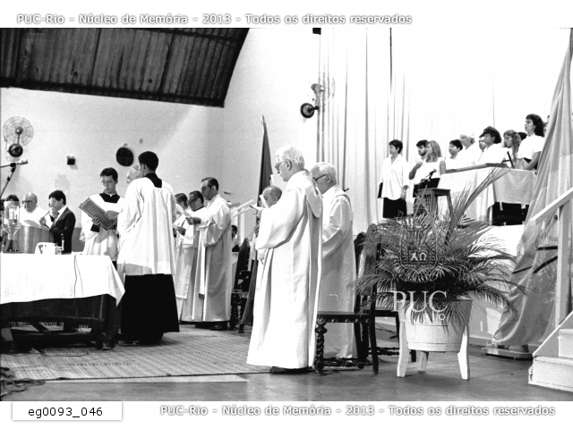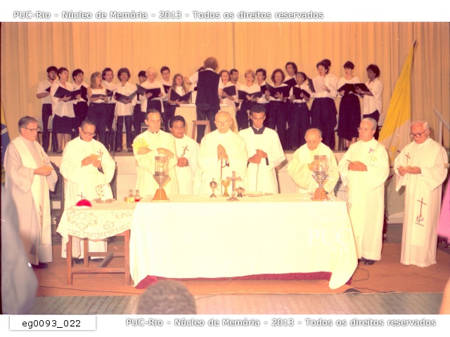 eg0093_022 | 22/3/1991 | Dom Eugênio Sales celebra a Missa de Ação de Graças em homenagem aos 50 anos da PUC-Rio. Ao fundo, o Coral da PUC-Rio. |
