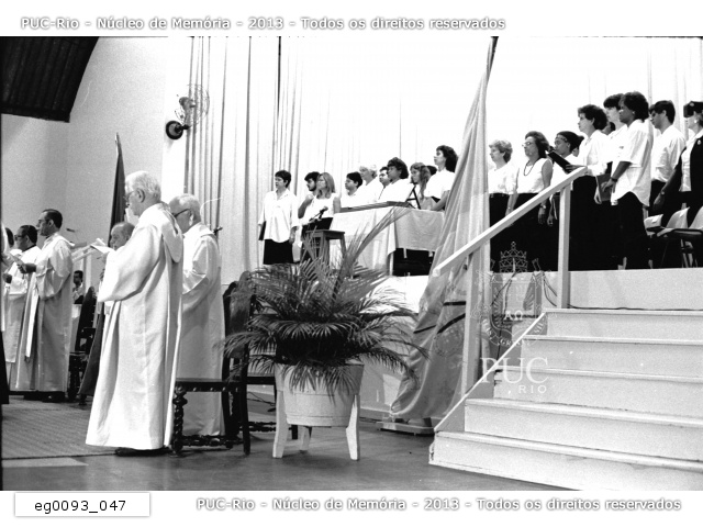 eg0093_047 | 22/3/1991 | Missa de Ação de Graças em homenagem aos 50 anos da PUC-Rio. Ao fundo, o Coral da PUC-Rio. |