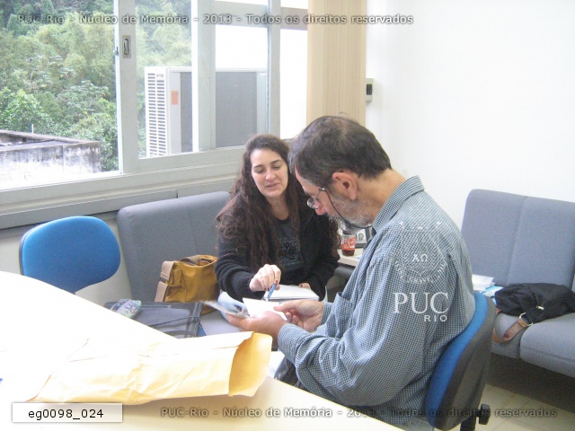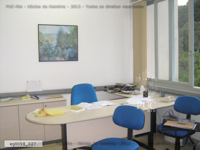 Série de fotografias que registra a visita à secretaria e aos acervos documentais do Departamento de Matemática e a entrevista com o diretor do Departamento, professor Carlos Frederico Borges Palmeira, realizada pelo Núcleo de Memória da PUC-Rio.