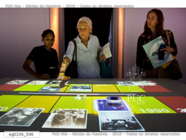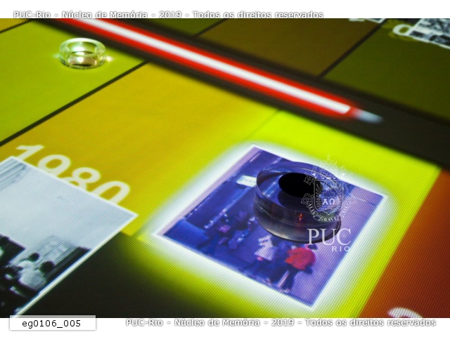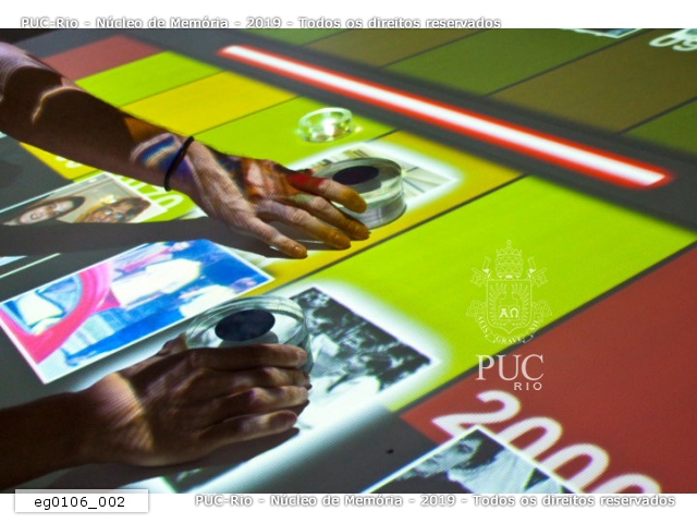 eg0106_029 | 4/11/2010 | Mesa interativa da sala Jogos de Memória da exposição PUC-Rio 70 Anos, Rumo aos 80. |