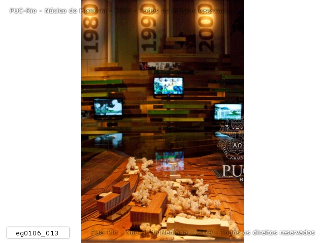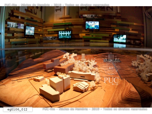 eg0106_012 | 4/11/2010 | Maquete do campus da PUC-Rio na sala No Tempo da exposição PUC-Rio 70 Anos, Rumo aos 80. |