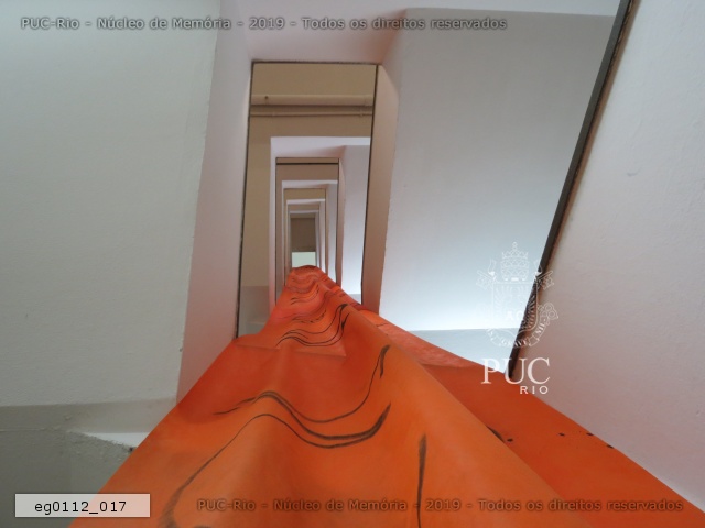 eg0112_017 | 7/11/2011 | Intervenção com faixa laranja no vão das escadas do edifício da Amizade com propaganda de uma das chapas que disputou as eleições de 2011 para o Diretório Central dos Estudantes da PUC-Rio (DCE). |