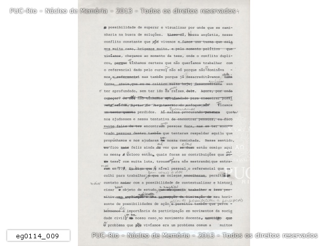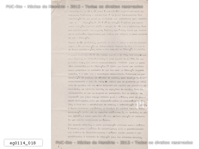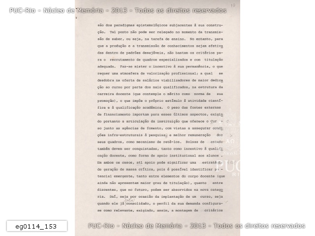 eg0114_018 | 11/1986 | Artigo intitulado 'Pós-Graduação e competência política', de autoria da professora Glaura Vasquez de Miranda, apresentado no Seminário dos 20 anos do mestrado em Educação da PUC-Rio. |