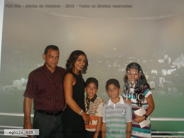 eg0126_029 | 11/2010 | Aluna do curso de Licenciatura a distância do Departamento de História da PUC-Rio posa para fotografia com marido e filhos. |