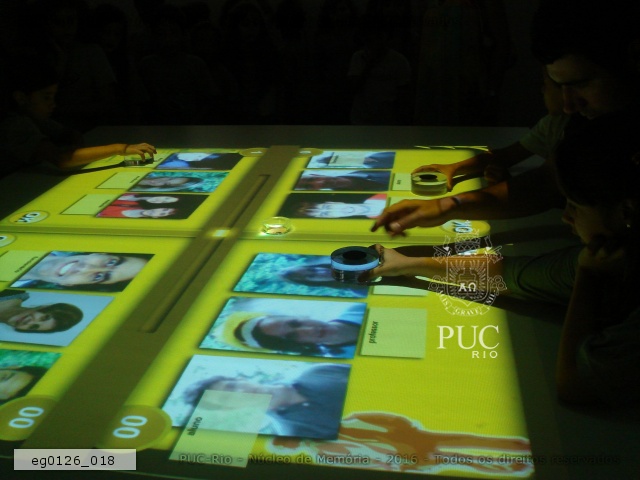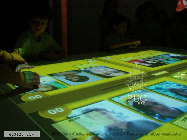 eg0126_017 | 11/2010 | Alunos do Colégio Stockler interagem com a mesa da sala Jogos da Memória. |