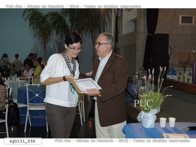 eg0131_056 | 19/10/2012 | A professora Erica dos Santos Rodrigues recebe o diploma de Honra ao Mérito em homenagem aos 20 anos de dedicação à PUC-Rio. |