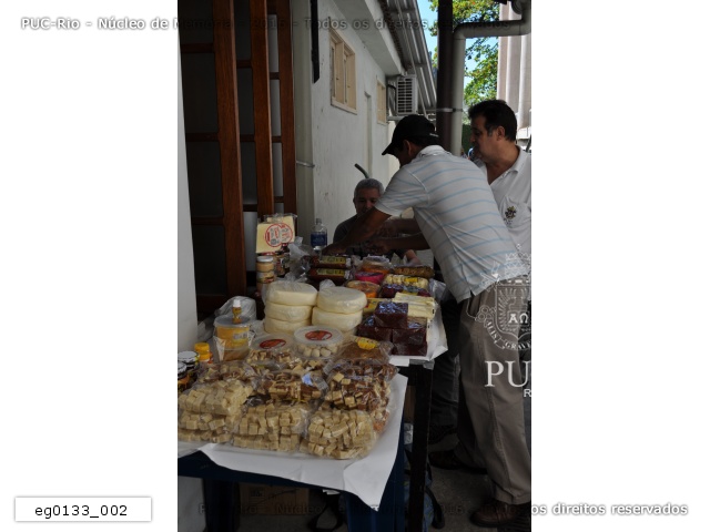 eg0133_001 | 21/8/2012 | Expositor que comercializa queijos, doces e biscoitos no estande montado nos fundos da AFPUC. |