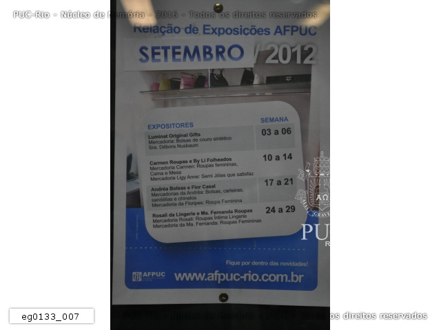 eg0133_007 | 21/8/2012 | Relação dos expositores do mês de setembro de 2012 na AFPUC. |