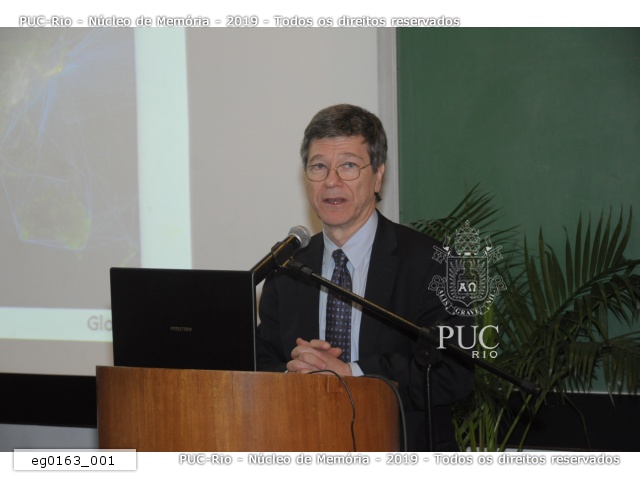 Aula Magna de abertura do ano letivo de 2014 com o diretor do Earth Institute e professor da Universidade de Columbia, Jeffrey Sachs, sobre o tema A Era do Desenvolvimento Sustentável. Sachs é Conselheiro Especial do Secretário Geral da ONU, Ban Ki-moon, nas Metas de Sustentabilidade para o Milênio. Estiveram presentes no evento o Reitor Prof. Pe. Josafá Carlos Siqueira S.J.; os Vice-Reitores; Decanos; Professores de diversos departamentos e alunos.