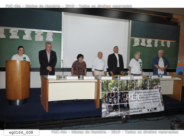 eg0166_005 | 5/9/2012 | A profa. Marina Moreira (Diretora do NEAM), o prof. Audir Bastos (NEAM), o monsenhor André Sampaio e a profa. Elizia Pirozzi (Líder Comunitária da Rocinha) no evento comemorativo dos 31 anos do NEAM. |