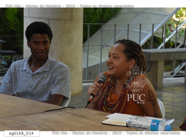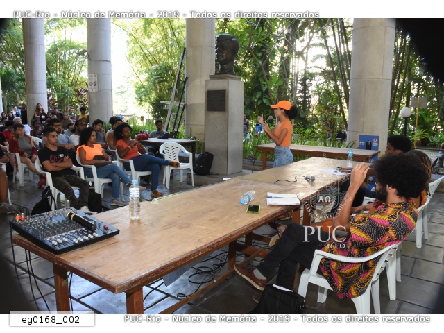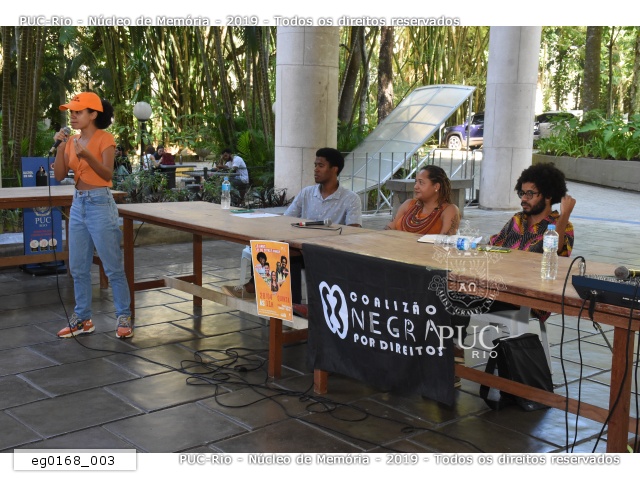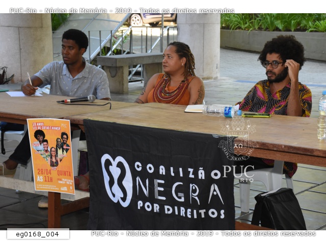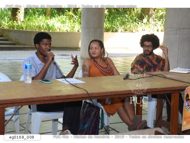 eg0168_008 | 28/4/2022 | O aluno Lucas Adeniran (COM) participa do evento ao lado da profa. Aza Njeri (LET) e de Wesley Teixeira (ONG Coalizão Negra Por Direitos). |