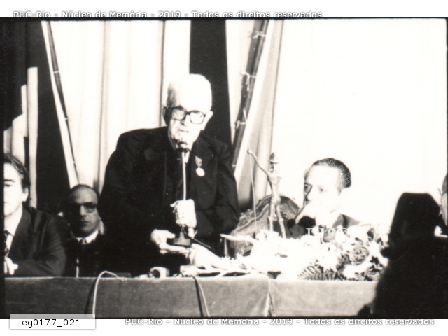 | Visita de Tancredo Neves à PUC-Rio e entrega de Medalha Cardeal Leme a Sobral Pinto - eg0177_020 |
