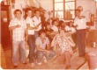 eq0001_031 | 1980 | Adalberto Pereira em confraternização com grupo na antiga carpintaria da PUC-Rio. |