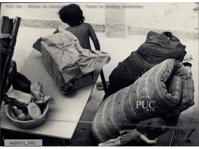 eq0001_082 | 10/1/1970 | Mulher e criança à espera do caminhão da mudança. |