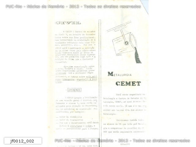 jf0012_012 | 1978 | Sem número. Sobre a situação do Departamento de Engenharia Civil. |
